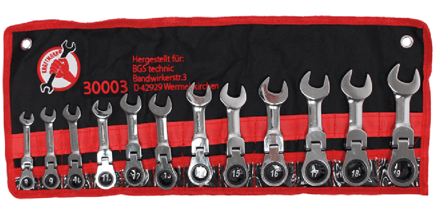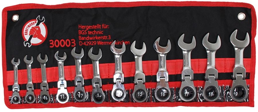 Ratschenring-Maulschlüssel-Satz, extra kurz | SW 8 – 19 mm | 12-tlg.