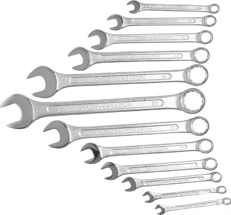 - Maul-Ringschlüssel: SW 6 – 7 – 8 – 9 – 10 – 11 – 12 – 13 – 14 – 17 – 19 – 22 mm