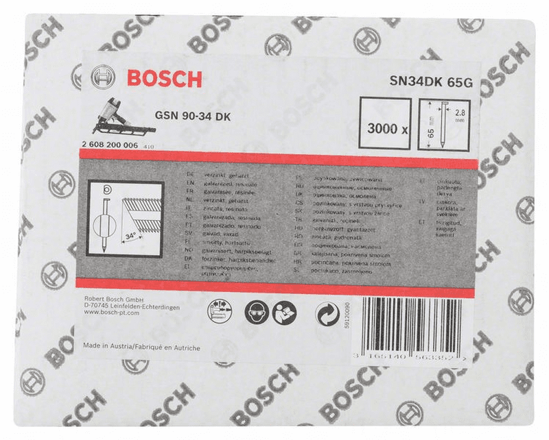 BOSCH Professional D-Kopf Streifennagel SN34DK 65G, 2,8 mm, 65 mm, verzinkt, glatt 2608200006
