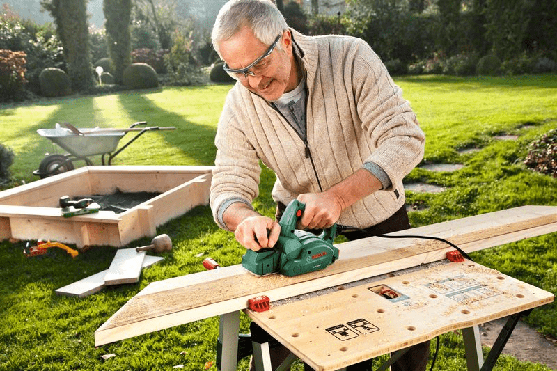 Hobel PHO 1500. Schnell, präzise und effizient. Kompakter 550-Watt-Handhobel für anspruchsvolle Anwendungen bis 1,5 mm Spantiefe. Spanauswurf mit Anschluss an Staubsack oder Staubsauger. Patentiertes Woodrazor-Messersystem – leichtes Hobeln ohne Kraftaufwand. Einfachster und schnellster Messerwechsel und hohe Oberflächengüte. Spanauswurfgebläse verhindert Spänestau – für unterbrechungsfreies Arbeiten. 3 V-Nuten zum präzisen Abkanten von Ecken. Automatisch ausklappender Parkschuh – verhindert Beschädigung des Werkstücks oder des Hobelmessers bei Ablegen des Hobels. Falztiefe bis 8 mm. Kombinierter Führungs- und Spantiefeneinstellknopf für griffsichere Führung und stufenlose Verstellung. Mit verbesserter Hobeltiefeneinstellung und Schlüsseldepot. Beste Ergonomie durch optimierte Position des für Links- und Rechtshänder geeigneten Handgriffs. Hartmetallwendehobelmesser (2 608 635 376), Sechskantstiftschlüssel