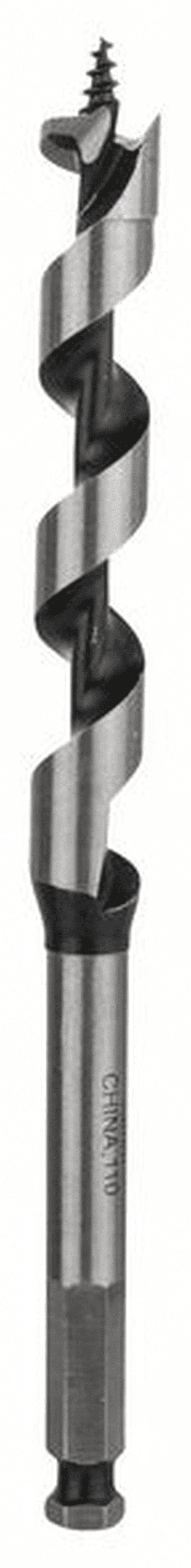 Holzschlangenbohrer, Sechskantschaft. Durchmesser: 13 mm, Arbeitslänge: 95 mm, Gesamtlänge: 160 mm, Schlüsselweite: 7,9 mm. Für präzise und saubere Bohrungen. Mit präzisionsgeschliffener Hauptschneide für schnelle Bohrungen. Nur geringe Bohrkraft erforderlich. Hochbelastbarer Bohrkopf mit selbsteinziehender Gewindespitze: Zieht den Bohrer auf der gesamten Länge bis zum Durchbruch durch das Material. Mit massivem Kernteil und reibungsarmer Spirale für gerade Bohrungen und hohe Spanabfuhr. Geeignet für alle Weich- und Harthölzer, sogar in nassem Holz. Ideal für Einsatz im Baunebengewerbe: Bei Zimmerleuten, Dachdeckern. Für Durchgangsbohrungen und Vorbohren von Sparrennägeln und für Stabdübelbohrungen. Einsetzbar in allen Bohrmaschinen mit 13-mm-Bohrfutter. Präzisionsgeschliffen für maßhaltige Bohrungen. Hoher Bohrfortschritt durch optimierte Wendelgeometrie. Hohe Bruchsicherheit. Feiner Oberflächenschliff.