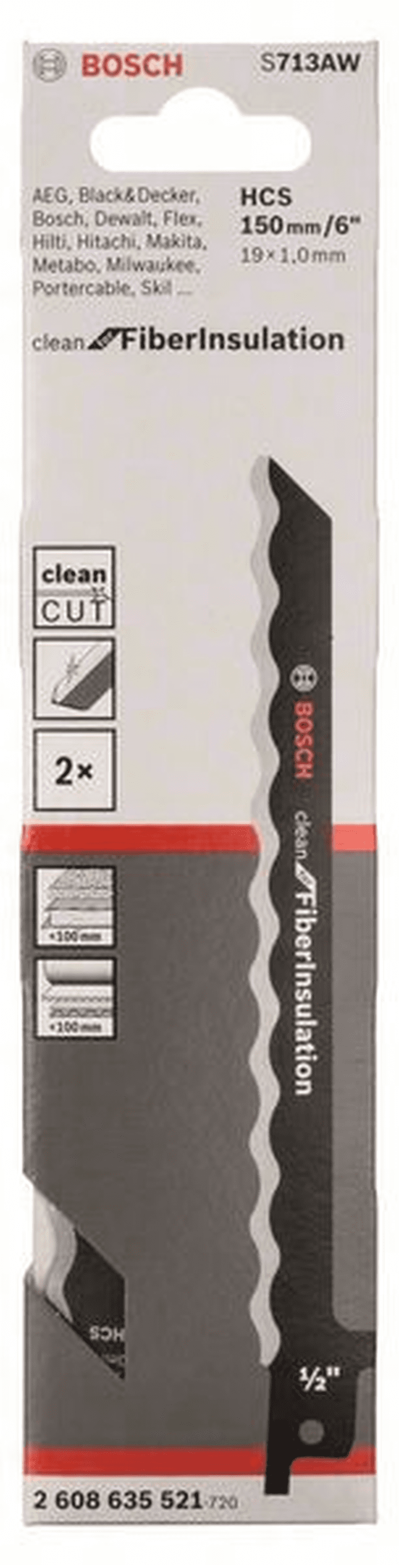 BOSCH Professional Säbelsägeblatt S 713 AW, Clean for Fiber Insulation, 2er-Pack 2608635521
