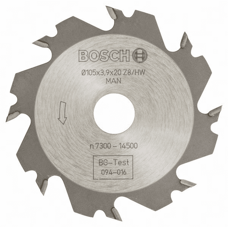 Scheibenfräser. Bohrungsdurchmesser 105 mm für Bosch-Universalfräse. Zähnezahl: 8, Durchmesser: 20 mm, Breite: 4 mm. Zum Fräsen von Schattenfugen, Längsnuten und Flachdübelverbindungen in Holz. Einfaches Herstellen des Rustikal-Looks mit der vielseitigen Bosch-Universalfräse und passendem Bosch-Nutfräser. Passend zu GUF 4-22 A Professional und PSF 22 A.