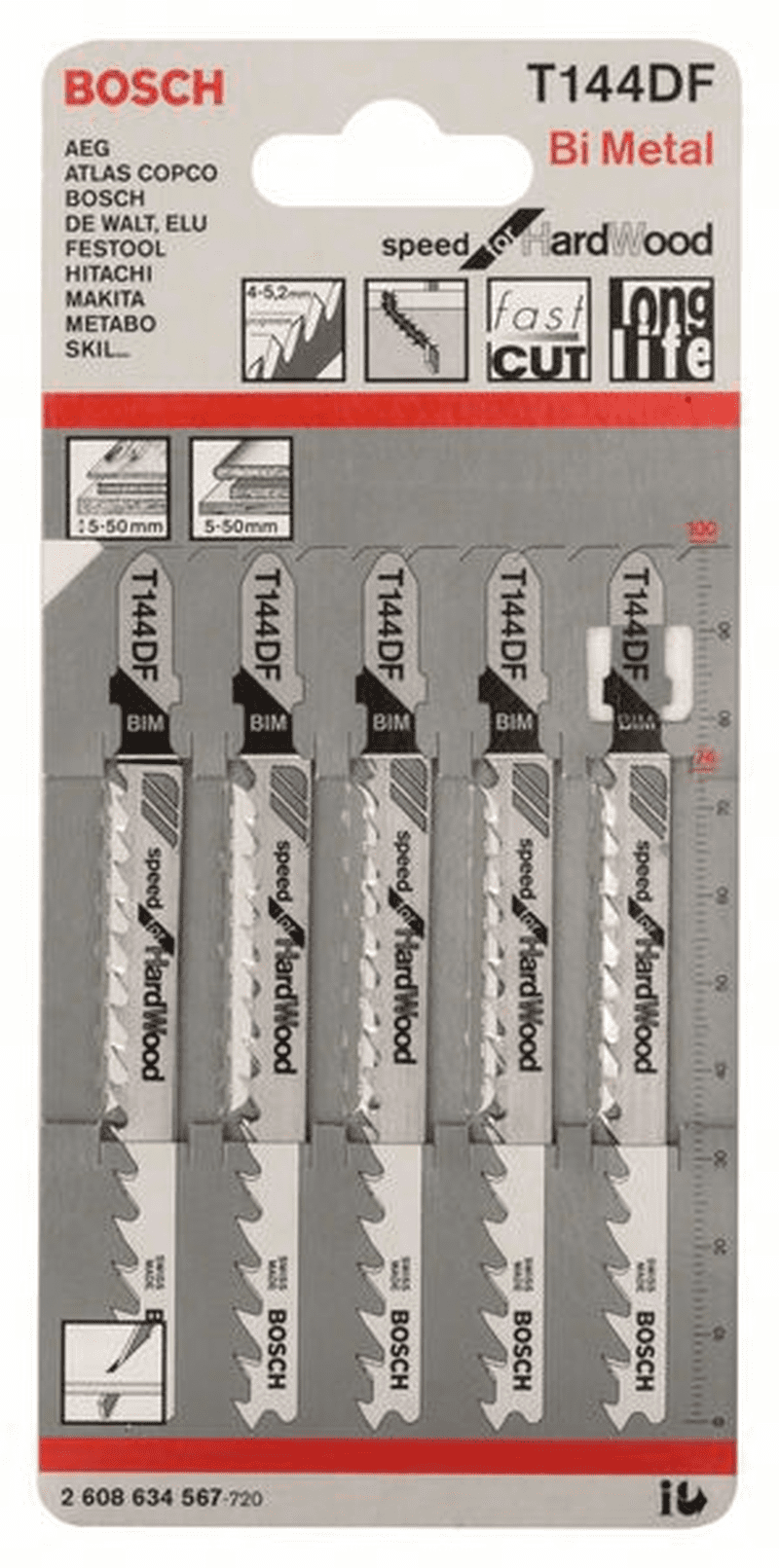 BOSCH Professional Stichsägeblatt T 144 DF, Speed for Hard Wood, 5er-Pack 2608634567