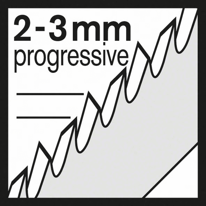 Stichsägeblatt Progressor for Wood. Typ: T 234 X. Werkstoff: HCS. Zahnausführung: freiwinkel-, zähnegeschliffen, Gesamtlänge: 117 mm, Zahnteilung: 2 – 3 mm. Einnockenschaft, schnell, sauber durch dick und dünn. Einsatzbereiche: Für Weichholz von 3 bis 65 mm Stärke, für Span-, Tischler-, Faserplatten. Inhalt der Verkaufspackung: 100 Stück.