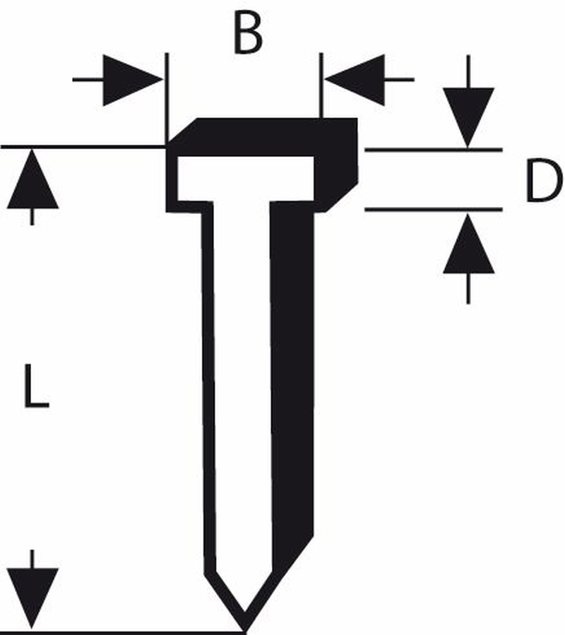 Nagel Typ 47. Nagel für Tacker. Kopfbreite: 1,8 mm, Dicke: 1,27 mm, Stiftlänge: 16 mm. Bosch-Tackernägel aus Hartstahldraht. Passend zu Tackern von AEG, Bosch, Esco, Kwb, Lux, Mekano, Metabo, Novus, Peugeot, Rocafix, Rocagraf, Stanley, Swingline, Wolfcraft.