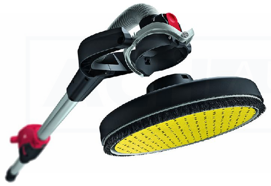 Die Drehung des Dreieckschleifkopfes erfolgt ohne Arbeitsunterbrechung durch die Maschinenbewegung, was ein absatzloses Schleifen der Wand- und Deckenübergänge ermöglicht.