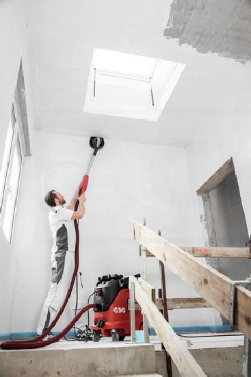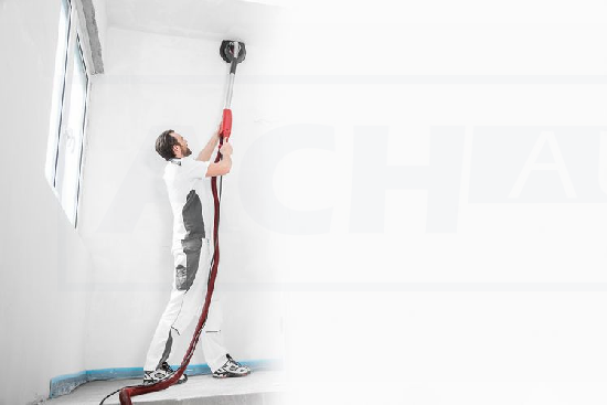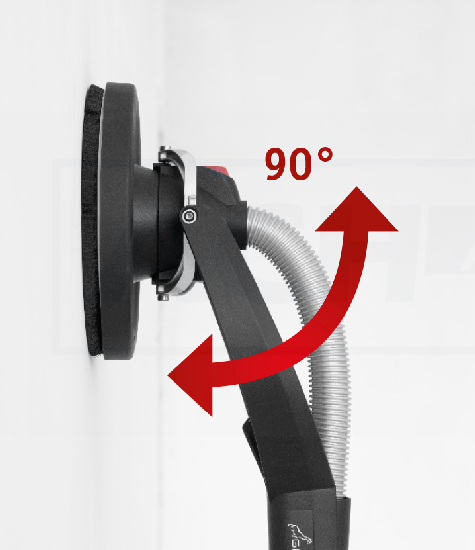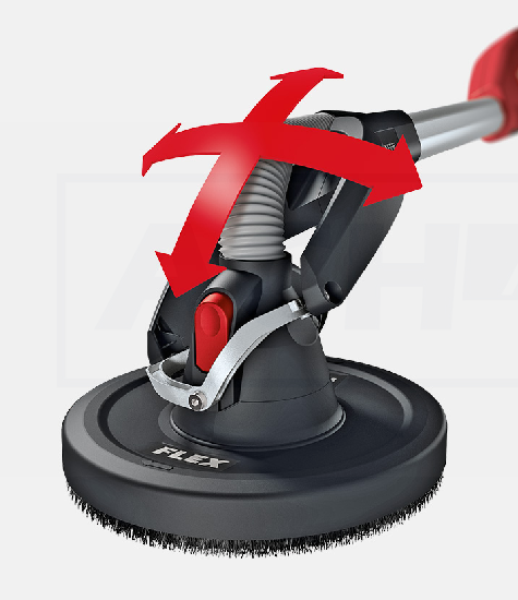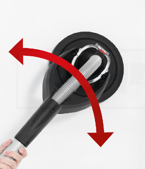- Kardanisch gelagerter Schleifkopf sorgt für hohe Flexibilität und optimale Anpassung beim Schleifen an Wänden und Decken.