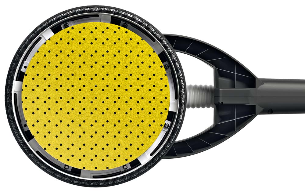 - Kardanisch gelagerter Schleifkopf sorgt für hohe Flexibilität und optimale Anpassung beim Schleifen an Wänden und Decken.