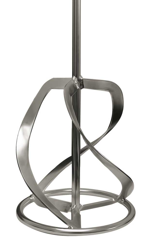 Drei links geformte Wendeln drücken das Mischgut nach unten und verhindern das Herausspritzen des Rührguts. Für die