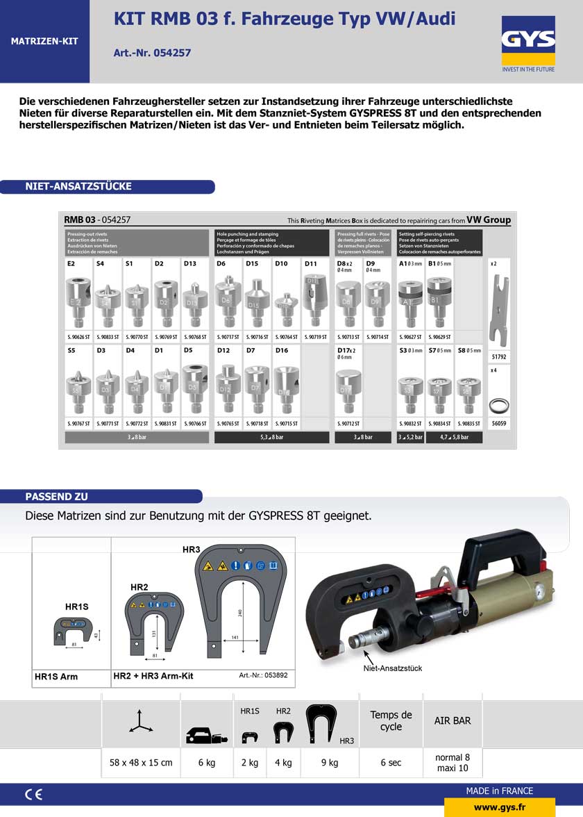 GYS 054257 Matrizen Set RMB 03 VW AUDI VAG SKODA SEAT für GYSPRESS 8t