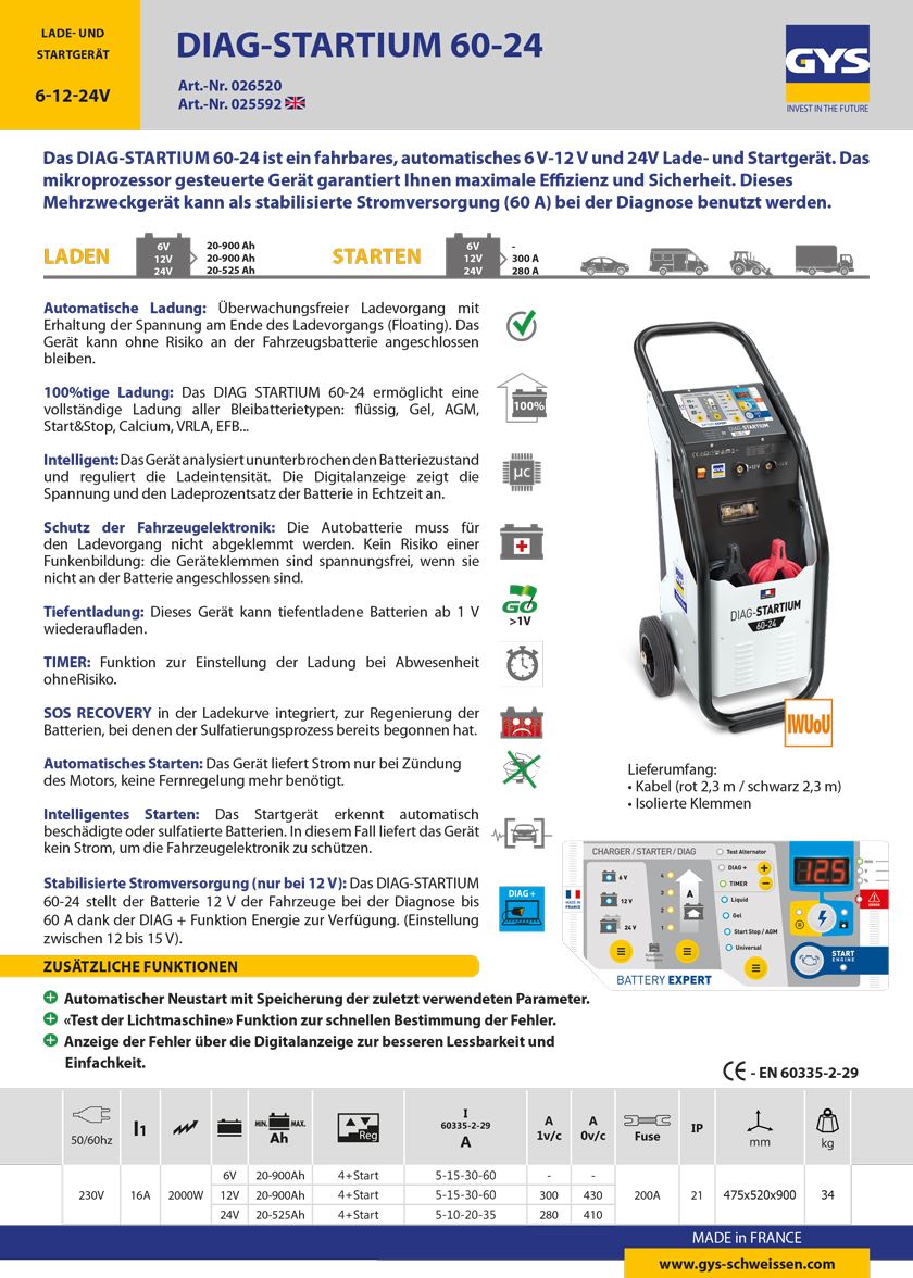 GYS DIAG STARTIUM 026520 60 24 automatisches 6 12 24V Batterieladegerät Startgerät