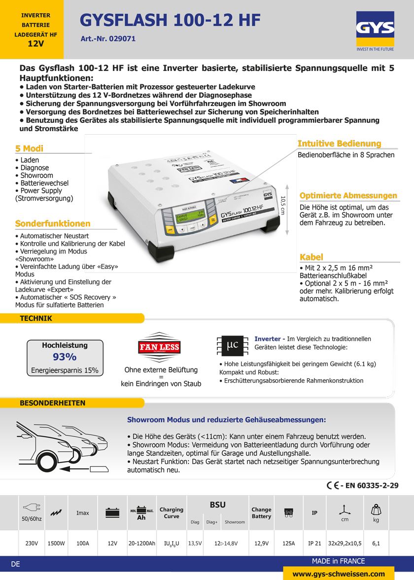 GYS GYSFLASH 100 12 HF 029071 Inverter Batterieladegerät HF 12V Ladegerät