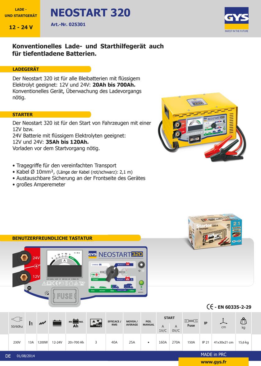 GYS NEOSTART 320 025301 Batterieladegerät + Starthilfegerät 12-24V 230V