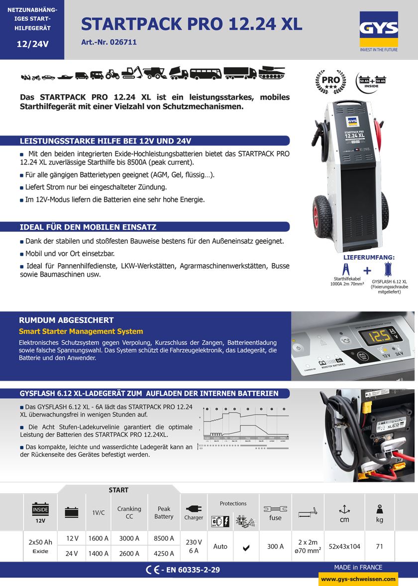 GYS STARTPACK PRO 12.24 XL 026711 netzunabhäniges Starthilfegerät 12 und 24V