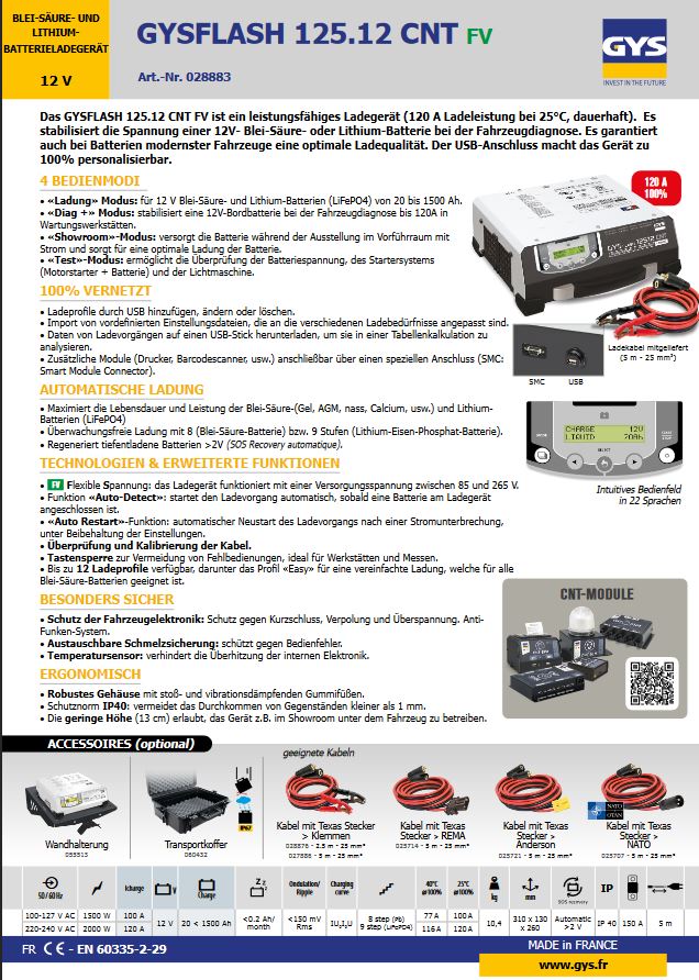 GYS GYSFLASH 125.12 CNT FV Ladegerät, Inverter (Kabel 5m) 028883