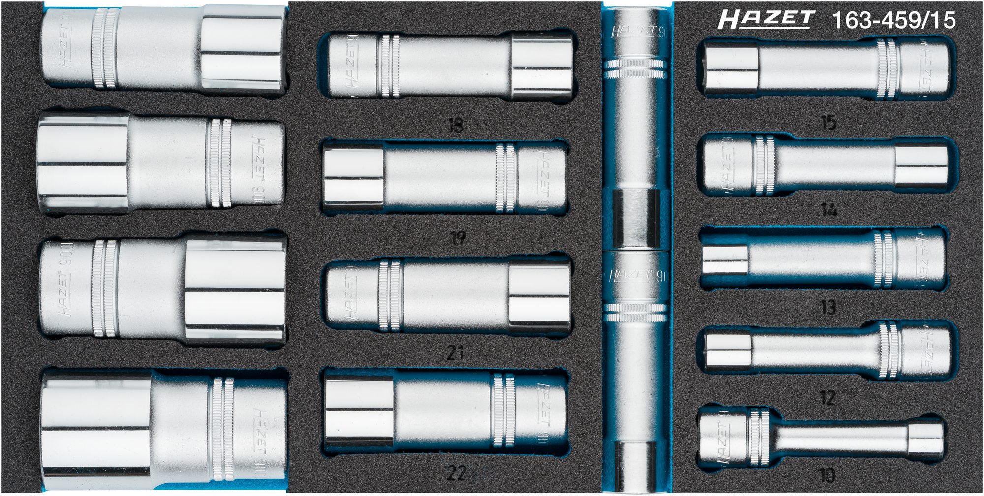 HAZET Steckschlüsselsatz 12,5mm 1/2 Zoll Außen-Sechskant-Tractionsprofil 15-teilig 163-459/15