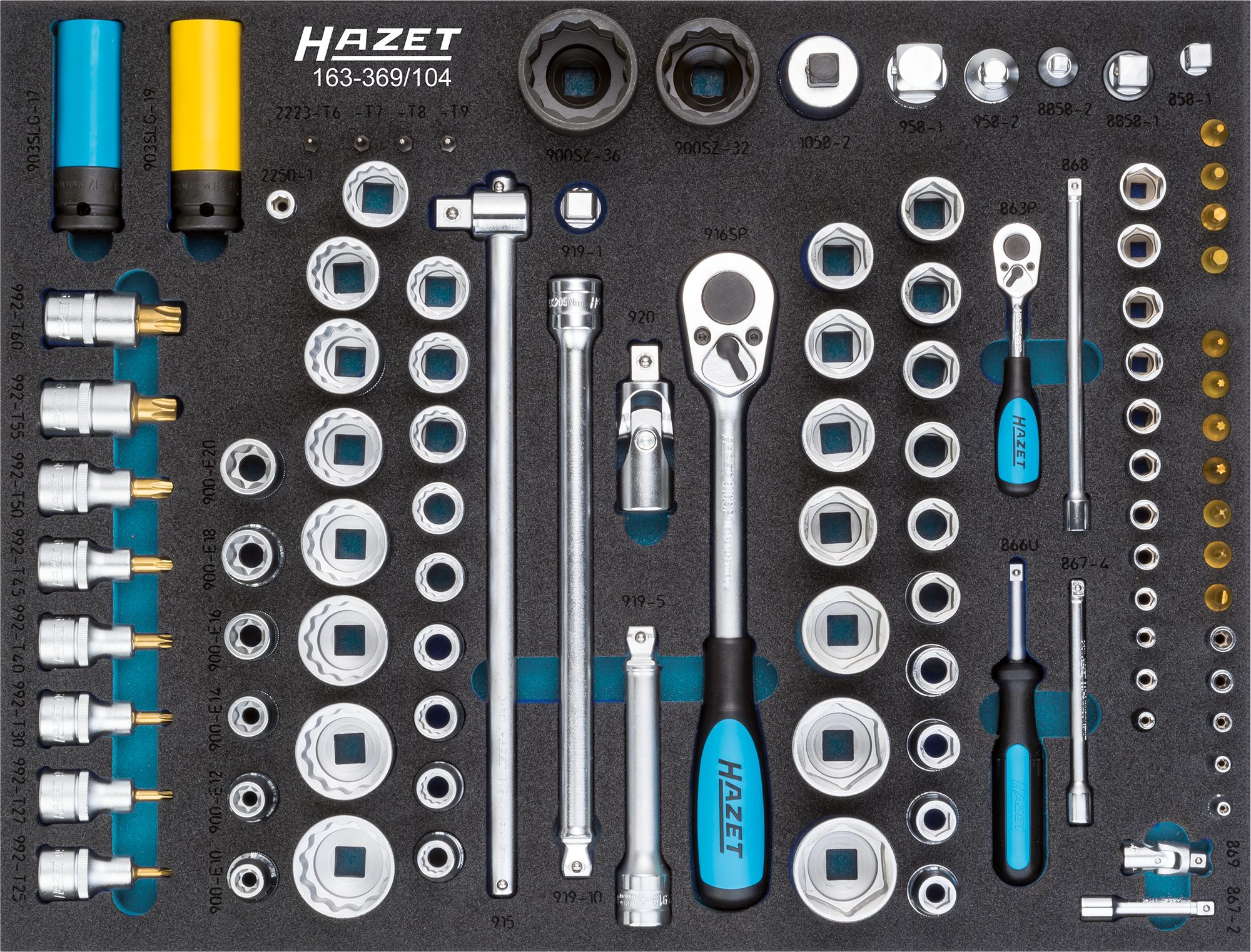 HAZET Steckschlüsselsatz 6,3mm 1/4 Zoll 12,5mm 1/2 Zoll 104-tlg 163-369/104h
