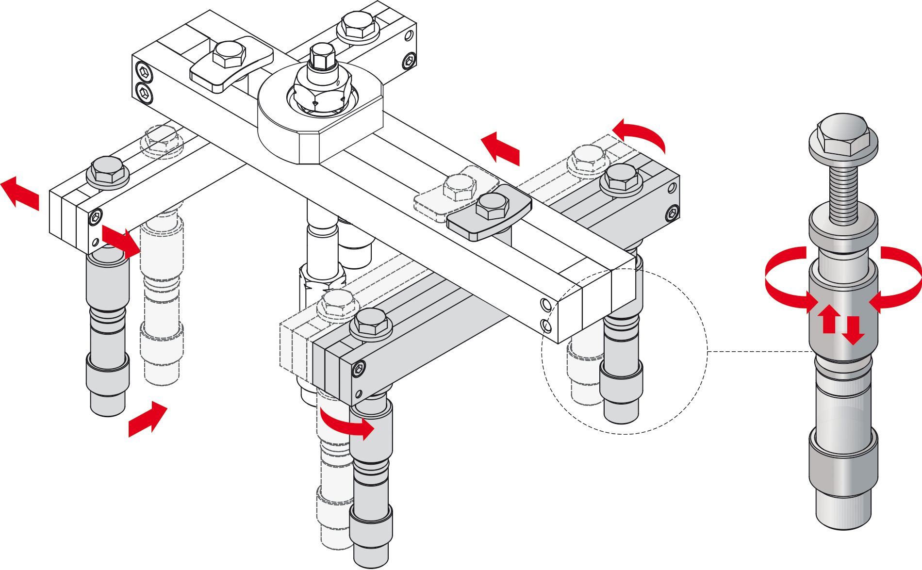 - Heavy Duty Abstützbrücke lässt sich individuell an Platzangebot und Abstützmöglichkeiten auf dem Zylinderkopf anpassen
