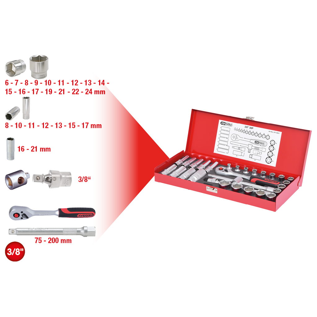 KS Tools Steckschlüsselsatz 3/8″, 30-teilig. – 917.4031