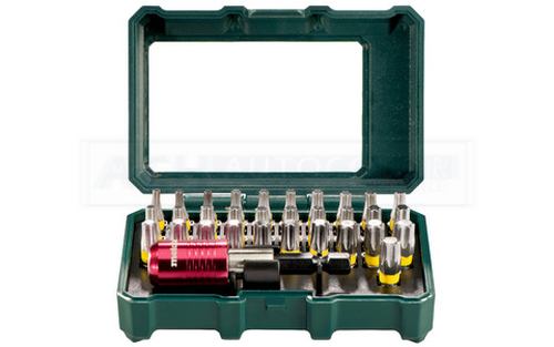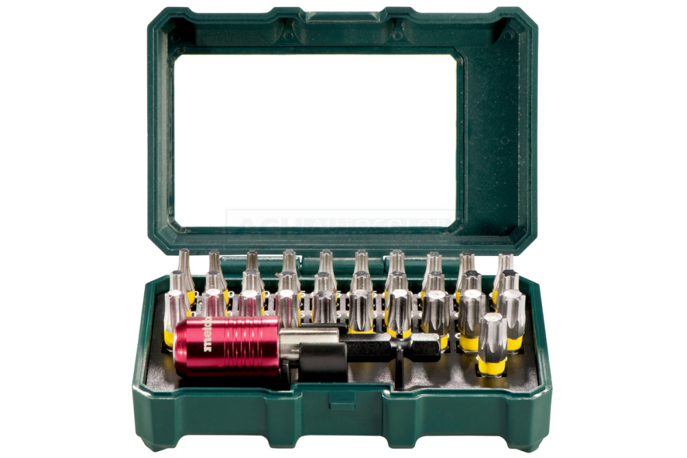 Bits aus Chrom-Vanadium-Stahl (S2-Qualität); Bits mit Farbcodierung: für ein schnelles und einfaches Auffinden des passenden Bits; Hochwertige, robuste Box im speziellen Metabo-Design
