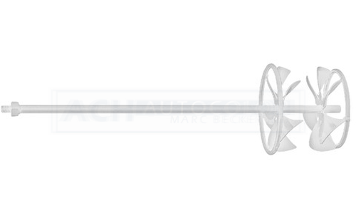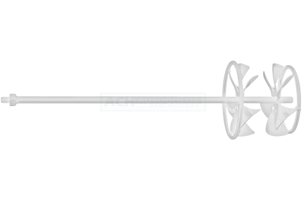 Mischwirkung von oben nach unten, die Wendeln drücken das Mischgut von oben nach unten, Ring wirkt schützend für den Behälter