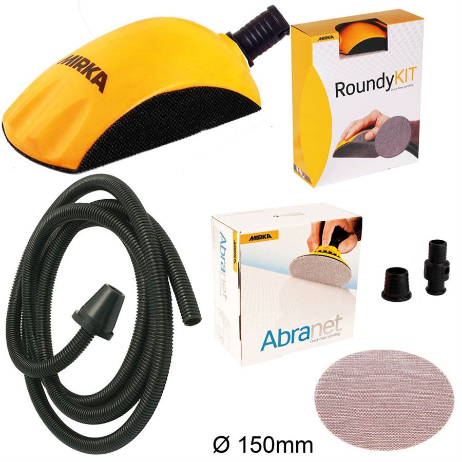 Mirka 150mm Handblock Roundy Kit + Schlauch + 15 Schleibscheiben Abranet